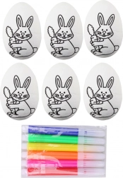 Veľkonočné polystyrénové vajíčka na maľovanie so vzorom zajačika, sada 6 ks s fixkami
