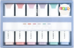 Sada obsahuje šesť kompaktných zvýrazňovačov ideálnych pre prehľadné a estetické podčiarknutie textu. Pastelové farby prinášajú jemný nádych a sú ideálne pre používateľov, ktorí preferujú decentný vzhľad svojich poznámok.