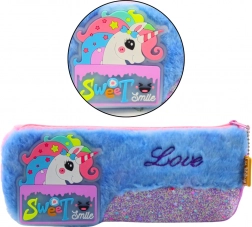 Tento čarovný plyšový peračník v modrej farbe s motívom jednorožca a trblietavými prvkami je skvelou voľbou pre všetky školské potreby. Mäkký a príjemný na dotyk, ponúka dostatok priestoru na uloženie pier, ceruziek a ďalších potrebných doplnkov.