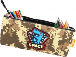 Príjemne veľké puzdro na ceruzky s motívom kozmického dinosaura v digitálnom maskovanom vzore. Jeho odolný textilný materiál a praktické zapínanie na zips garantujú dlhú životnosť aj pri intenzívnom používaní.