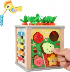 Táto inovatívna hračka spája zábavu s učením a rozvíja schopnosti vášho dieťaťa vďaka šiestim rozmanitým aktivitám. Drevená kocka je skvelým nástrojom na rozvoj motorických zručností a samostatnosti.