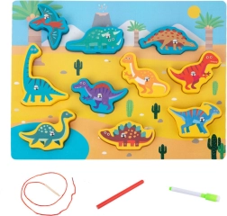 Edukativná drevená skladačka s motívom dinosaurou, ktorá rozvíja kreativitu detí a ich manuálne schopnosti. Vďaka magnetickým prvkom je hra atraktívna a poskytuje ďalšie výzvy.