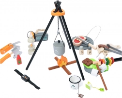 S touto skvelou drevenou sadou na kempovanie si deti užijú množstvo dobrodružstiev doma aj vonku. Realistické príslušenstvo ponúka možnosti, ako sa zahrať na kempovanie, od zapálenia ohňa až po prípravu jedla. Sada obsahuje batoh, lampáš, nožnice na grilovanie a ďalšie nástroje, ktoré podporujú rozvoj manuálnych a poznávacích zručností.