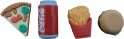 Pizza, hamburger, hranolky aj plechovka coly – hravé tvary spríjemnia školské povinnosti a zároveň kvalitne mažú. Skvelá voľba pre malých gurmánov s fantáziou.
