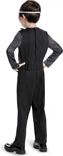 Tento detský kostým Jacka Skellingtona premení malého fanúšika na kráľa Mestečka Halloween. Kvalitný čierny overal s bielymi prúžkami napodobňuje Jackov elegantný oblek, ikonický motýlik-netopier dodáva charakter a maska so šitým úsmevom dotvorí dokonalý look.