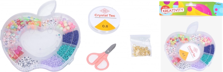 Korálkový set Jablko ponúka všetko, čo potrebujete na tvorbu vlastných náhrdelníkov a náramkov. Sada je perfektná pre kreatívne tvorenie a obsahuje korálky, povrázok, nožnice a zapínanie.