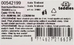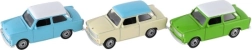 Ikonický model vozidla Trabant od značky Welly v mierke 1:60 poteší malých aj veľkých zberateľov. Kovové prevedenie, otvárateľné dvere, detailný interiér a voľnobeh zaručujú skvelý zážitok z hry aj vystavenia. Dĺžka cca 7 cm, mix farieb, vhodné od 3 rokov.