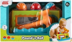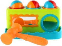 Táto farebná plastová zatlákačka s dĺžkou 21 cm je skvelou voľbou pre prvé rozvojové hry. Deti kladivkom bezpečne zatĺkajú tri balóniky do pripravených otvorov, čím trénujú úchop, silu a presnosť. Integrované zrkadielko na čelnej strane zvyšuje interakciu a zábavu.