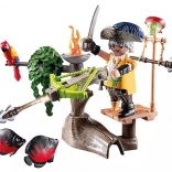Objavujte stratené poklady s hracou súpravou Playmobil Piráti s balistou. Raft je vybavený otočnými delami, ktoré zabezpečujú ochranu pri plavbe po otvorenom mori. Presne takto zostavené príslušenstvo je umiestnené v sudoch, aby všetko bolo pripravené na náhle hrozby.