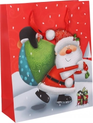 Štýlová vianočná darčeková taška v strednej veľkosti M (26 × 32 × 10 cm) na rýchle a elegantné zabalenie darčekov. Ponúka 4 rôzne vianočné motívy, je pevná, praktická a ideálna na knihy, kozmetiku či menšie boxy.