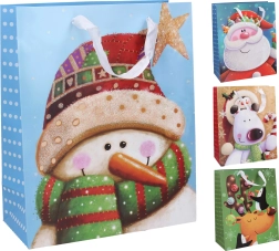 Vítame vás v kúzelnom svete vianočných darčekových tašiek vo veľkosti L! Každá taška prichádza so štyrmi rôznymi motívmi, ktoré zaručujú, že každý darček bude vyzerať jedinečne a špeciálne.