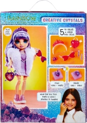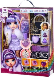 Objav kúzlo módy a tvorenia s bábikou Rainbow High Creative Crystals Violet Willow. Pomocou priloženej živice a formičiek si vyrobíš viac než 5 kryštálových doplnkov pre bábiku aj prsteň pre seba. Bábika má pohyblivé kĺby a česateľné vlásky, takže je skvelá na styling a kreatívnu hru.