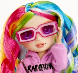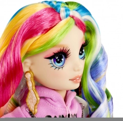 Amaya Raine očarí výraznými dúhovými vlasmi, mikinou s nápisom RAINBOW a lesklou sukňou. Vďaka pohyblivým kĺbom skvele pózuje a baví.