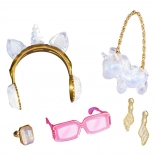 Amaya Raine z kolekcie Rainbow High Creative Crystals spája kreatívnu dielničku s módnym svetom. Pomocou priesvitnej živice a znovupoužiteľných formičiek ľahko odlievaš originálne prívesky, okuliare a ďalšie ozdoby, ktorými doladíš outfit bábiky – aj svoj vlastný štýl. Každý výtvor je jedinečný a dodá hre iskru.