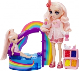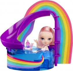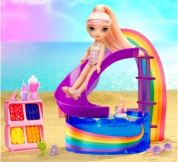 Obsah balenia: Exkluzívna malá sestrička v outfite, bazén s dúhovou šmykľavkou, smoothie stánok s mixérom, ovocím a množstvo doplnkov. Vhodné pre deti od 3 rokov.