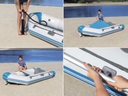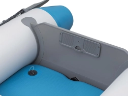 Praktické detaily ako odskrutkovateľné ventily pre rýchle nafúknutie/vyfúknutie, otočné dulky pre plynulý záber vesiel, úchopové lano a integrovaný odtokový ventil uľahčujú manipuláciu. Príprava pre závesný motor (max. 2,25 kW/3 HP) rozširuje možnosti využitia – od pokojnému pádluvania po svižnejšie presuny.