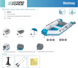 Súčasťou setu je všetko pre okamžitý štart: skladacie hliníkové veslá 145 cm, ručná pumpa, 10 m ťažné lano a opravná sada. Ľahko montovateľná lavička zvyšuje komfort pri dlhších výjazdoch.