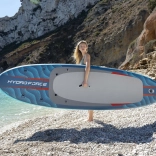 Univerzálny nafukovací paddleboard HYDRO-FORCE OCEANA 2v1 je ideálny na rekreačné pádlovanie aj dlhšie výlety. Vďaka pevnej drop-stitch konštrukcii je ľahký, tuhý a stabilný, pritom sa ľahko prenáša v batohu. Po chvíli ho premeníte na kajak so sedadlom a operadlom, nechýba protisklzová nášľapná plocha, odnímateľné plutvy, bezpečnostný leash a bohaté možnosti uloženia vybavenia.