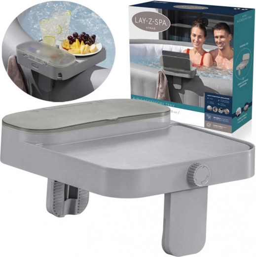 Užite si relax vo vírivke bez kompromisov – multifunkčná polička Bestway 4v1 pre všetky modely LAY‑Z‑SPA udrží nápoje, telefón, tablet aj drobnosti vždy poruke. Ponúka stolík, úložný priestor odolný voči striekajúcej vode, vešiak na uteráky a držiak na tablet v jednom. Vďaka nastaviteľným čeľustiam (5–25 mm) ju rýchlo a stabilne pripevníte na okraj vírivky.