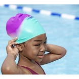 Ergonomický strih sa prispôsobí hlave, utesní vlasy a uši proti striekajúcej vode a zároveň pomáha znižovať odpor pre plynulejšie plávanie. Viacfarebný vzhľad zvyšuje viditeľnosť v bazéne a deti si ho zamilujú.