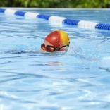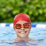 Výrazné dvojfarebné prevedenie zvyšuje viditeľnosť dieťaťa v bazéne a pridáva štýl pri každom tréningu.