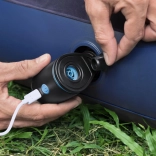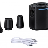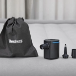 Vďaka prietoku 90 l/min zvládne pumpa rýchle nafúknutie aj vyfúknutie. Ovládanie je intuitívne – stačí jedno tlačidlo. S tromi nadstavcami pasuje na väčšinu bežných ventilov pri nafukovacích matracoch, kruhoch, ležadlách či kempingových karimatkách.