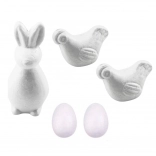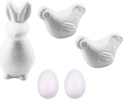 Povyšte svoje veľkonočné zdobenie na novú úroveň so veľkonočnou sadou na maľovanie polystyrénových dekorácií. Tento kreatívny set je skvelý pre deti aj dospelých, ktorí chcú pridať osobný dotyk k svojim sviatočným dekoráciám. Vnútri sady nájdete zajačika o výške 10 cm, dve sliepky o rozmeroch 7 x 5 cm a dve vajcia o veľkosti 5 cm. Dobre zladené farby a priložený štetec vám uľahčia vyfarbovanie detailov.