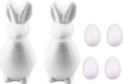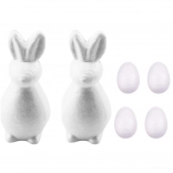 Táto sada obsahuje dva polystyrénové zajace a štyri polystyrénové vajíčka. Súčasťou balenia sú tiež farby v štyroch intenzívnych farbách a štetec, ktorý umožňuje jednoduché a presné maľovanie. Figúrky z ľahkého polystyrénu sú odolné proti poškodeniu a skvele absorbujú farby, takže dekorovanie je skutočným potešením.