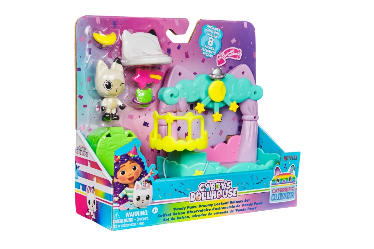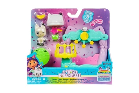 Rozšírte svoj Gabiin mačací domček o balkónik, z ktorého môže kocúrik Panduško pozorovať hviezdy teleskopom a zdobiť zábradlie roztomilými záveskami. Sada je ideálna pre malých fanúšikov seriálu z Netflixu, ktorí milujú kreatívne rozprávanie a zbieranie figúrok, nábytku aj tematických izbičiek.