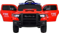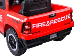 Licencované detské auto RAM v hasičskom prevedení Fire & Rescue ponúka realistický zážitok z jazdy aj zásahu. Vďaka silným motorom 4×12 V (25 W) a kapacitnej batérii 12 V 10 Ah si poradí s asfaltom, dlažbou aj trávou. O pohodlie a bezpečie sa starajú mäkké EVA kolesá, zadné tlmiče, otváracie dvere a 3-bodový bezpečnostný pás na sedadle z eko kože.