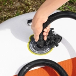 Vďaka regulácii po 0,5 PSI ľahko nastavíte ideálny tlak pre SUP až do 16 PSI, ale aj pre matrace či bazénové hračky. Silikónové nožičky zabezpečujú stabilitu na rôznych povrchoch a štyri adaptéry pokryjú väčšinu bežných ventilov.