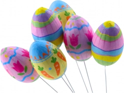 Vajíčka sú vybavené drôtikmi, ktoré umožňujú ich jednoduché umiestnenie v rôznych dekoráciách, ako sú kvetinové aranžmány alebo vence.