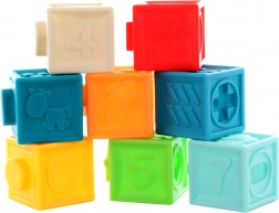 Kocky obsahujú vystúpené číslice a zvieratká pre edukačnú hru a rozvoj rozpoznávania čísiel.