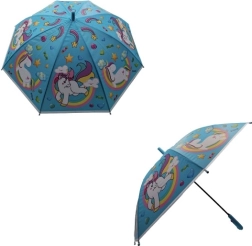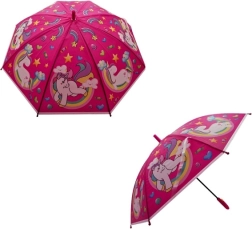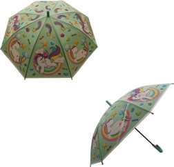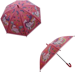 Rozžiarte daždivé dni týmto čarovným detským dáždnikom s motívom jednorožcov. Ponúka vystreľovacie otváranie, pevnú oceľovú konštrukciu a pohodlnú plastovú rukoväť pre ľahké držanie. Vďaka praktickému pásiku na patent sa ľahko zatvára a prenáša. Dostupný v rôznych farebných variantoch podľa aktuálnej ponuky.