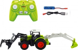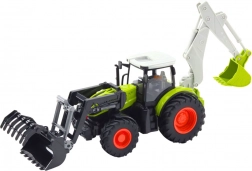 Realisticky spracovaný traktor v mierke 1:24 kombinuje farmárske a stavebné práce v jednom. Predná lyžica je otočná, zadné rameno slúži ako malý bager a LED svetlá dodajú jazde atraktívny efekt aj za šera. Gumené kolesá a čiastočne kovová konštrukcia zvládnu intenzívne hranie doma i vonku.