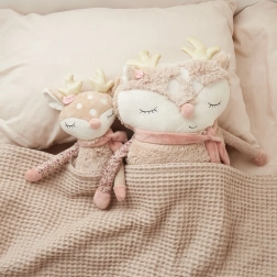 Srnček Ella je vyrobený z mäkkého, príjemného materiálu, ktorý deťom poskytuje pocit istoty a pohodlia už od prvých dní.