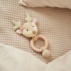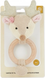 Táto štýlová motorická hračka s dreveným krúžkom a textilným jelienkom je ideálna pre prvé mesiace života. Kombinácia prírodného dreva a hebkej látky podporuje zmyslové vnímanie, jemnú motoriku aj koordináciu ruka–oko. Elegantný dizajn v pieskových tónoch poteší deti aj rodičov.