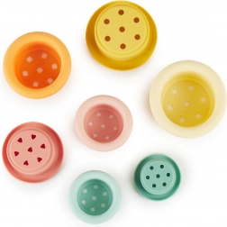 Sedemdielna stohovacia sada kelímkov zo 100% silikónu. Táto hračka je navrhnutá tak, aby zlepšovala koordináciu a jemnú motoriku detí. Vyrobené z odolného a bezpečného silikónu, tieto kelímky sú ideálne na použitie v interiéri aj vonku. Navyše ich údržba je veľmi jednoduchá – stačí ich umyť vodou a jemným mydlom.
