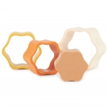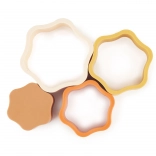 Táto 4‑dielna skladacia sada v tvare kvetiny je vyrobená zo 100% potravinárskeho silikónu, ktorý je mäkký na dotyk, bezpečný pre deti a zároveň veľmi odolný. Stohovanie a triedenie jednotlivých dielikov rozvíjajú koordináciu oko–ruka, jemnú motoriku a logické myslenie.
