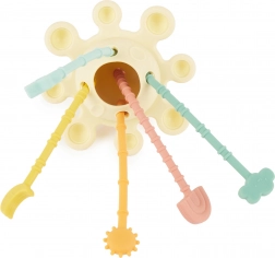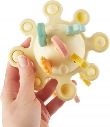Táto silikónová motorická hračka je navrhnutá podľa princípov montessori a pomáha deťom prirodzene rozvíjať zručnosti cez hru. Odolné naťahovacie šnúrky možno ťahať tam a späť, pretláčacie prvky posilňujú svaly prstov a rozmanité textúry stimulujú hmat aj zvedavosť.