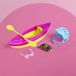 Táto rozkošná bábika Evi Love je pripravená vyraziť na vodu vo svojom farebnom kajaku. Vďaka priloženým doplnkom – prilbe, slnečným okuliarom a pádlu – si deti môžu prehrávať bezpečné a zábavné dobrodružstvá na rieke či jazere. Súčasťou setu je aj malá vydra, ktorá dodá hre viac príbehov a emócií.