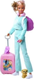 Bábika Steffi Love Cestovateľka je pripravená na každé dobrodružstvo. Má pohodlnú tyrkysovú teplákovú súpravu, biele tenisky a okuliare, aby bola na cestách vždy šik. Doplnky ako ružový kufor s potlačou, cestovný vankúšik, batôžtek a rozkošný psík robia z hrania zábavnú a realistickú cestovateľskú výpravu.