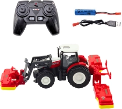 Tento zábavný traktor je vybavený dvoma bočnými kosačkami a jednou prednou, čo zaisťuje jeho vysokú funkčnosť a vierohodnosť pri hre. Vďaka diaľkovému ovládaniu s technológiou 2.4 GHz poskytuje stabilné a nerušené ovládanie, umožňuje pohyb vpred a vzad, a zatáčanie vľavo a vpravo.