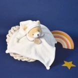 Medvedík je zabalený v krásnej darčekovej krabičke, ktorá je vhodná na ukladanie spomienok ako sú fotografie alebo iné pripomienky narodenia bábätka. Vďaka opakovane použiteľnej krabičke sa stáva aj nádherným darčekom pre každú príležitosť.