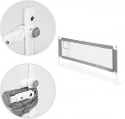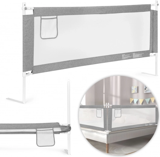 Praktická posteľná zábrana ECOTOYS so šírkou 180 cm zaistí bezpečie pri spoločnom spaní s deťmi. Ponúka univerzálnu montáž, nastaviteľnú výšku pre rôzne matrace, pevnú oceľovú konštrukciu a priedušnú sieťovinu pre lepší dohľad. Vďaka sklopnému hornému madlu je prístup do postele jednoduchý a praktické vrecko udrží drobnosti poruke.
