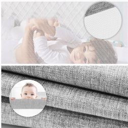 Hornú časť bariéry možno ľahko sklopiť pomocou tlačidla, takže sa do postele dostanete bez demontáže. Odnímateľný poťah možno vyprať a udržiavať v čistote. Integrované vrecko pojme cumlík, obrúsky či drobné hračky – všetko máte vždy poruke.