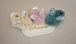 Doprajte svojmu dieťaťu pocit pokoja a bezpečia s touto sadou, ktorá obsahuje nielen plyšového zajačika s elegantnou mašľou, ale i topánočky s potlačou zajačích uší a vyšitým tváričkou.