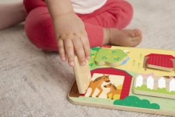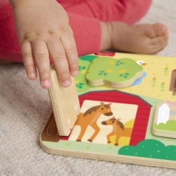 Táto hracia doska obsahuje 4 dvierka, ktoré sa otvárajú a odhaľujú rôzne priateľské zvieratká a ich mláďatá. Veľkosť dvierok je ideálna pre malé rúčky, čo uľahčuje manipuláciu a podporuje rozvoj jemnej motoriky.