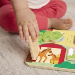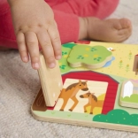 Deti sa môžu tešiť na objavovanie skrytých zvieratiek pod každými zo 4 otváracích dvierok, čo podporuje zvedavosť a poznávanie.
