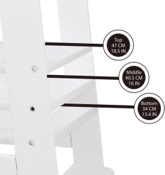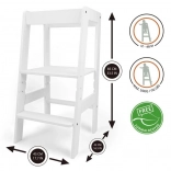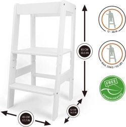 Objavte kúzlo tejto bielej učebnej veže, ktorá bola konštruovaná z vysoko kvalitnej preglejky s maximálnou nosnosťou až 50 kg. Vďaka možnosti nastavenia výšky plošiny na 34, 40,5 alebo 47 cm sa dokonale prispôsobí rastu a potrebám dieťaťa.